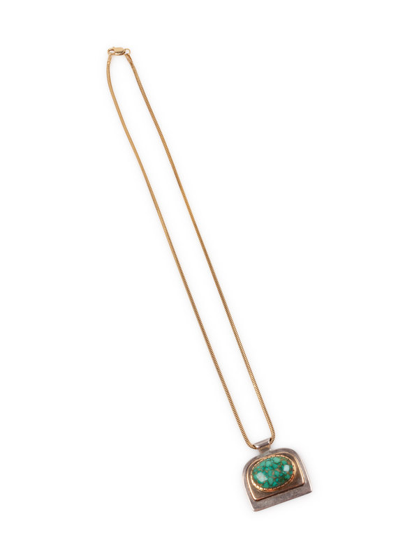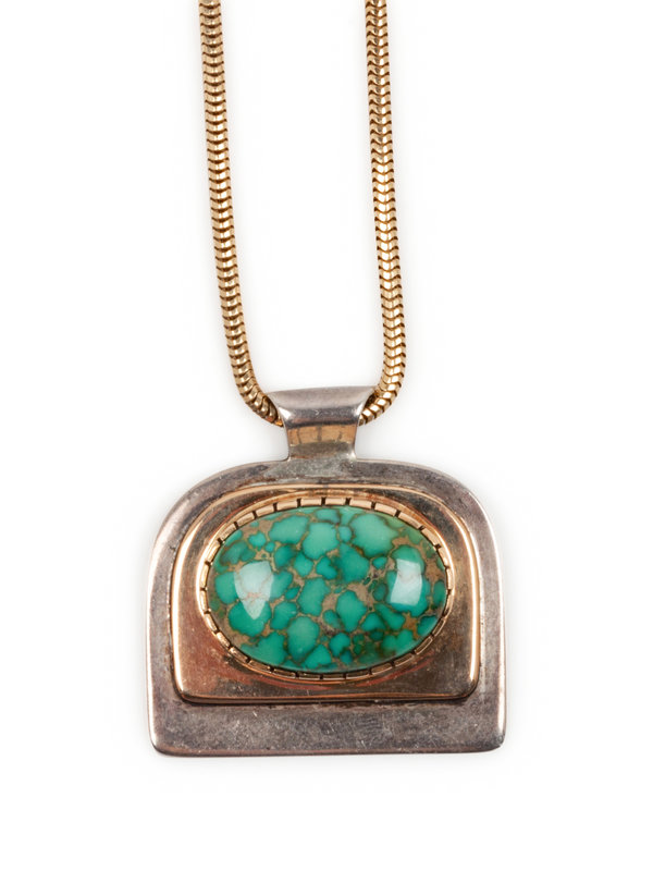 Turquoise, Silver, and Gold Pendant, on a 14k Gold Chain