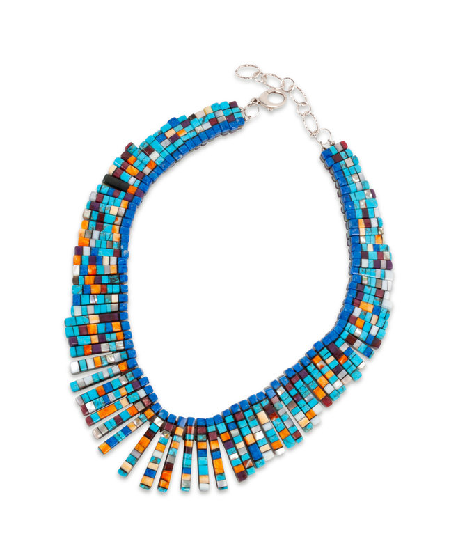 Attributed, Reversible Mosaic Inlay Multi-Stone Necklace