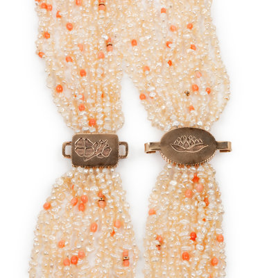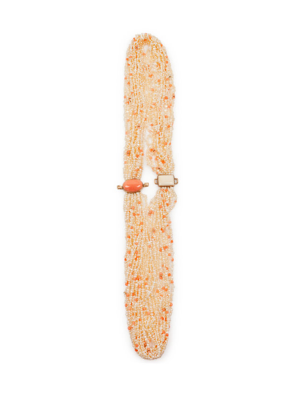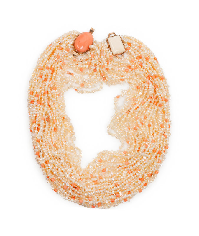 14k Gold, Pearl, and Coral Multi-Strand Necklace