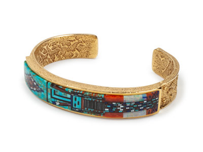 18k Gold Cuff Bracelet with Micro-mosaic Inlay Yei