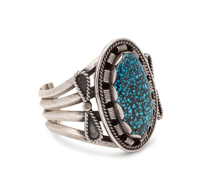 Navajo Silver and Lander Turquoise Cuff Bracelet