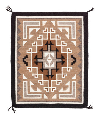 finely woven using natural wool; starburst design; 72 wefts/ 14 warps per inch