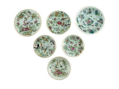 A Group of six Chinese Export Famille Rose Celadon Porcelain Dishes