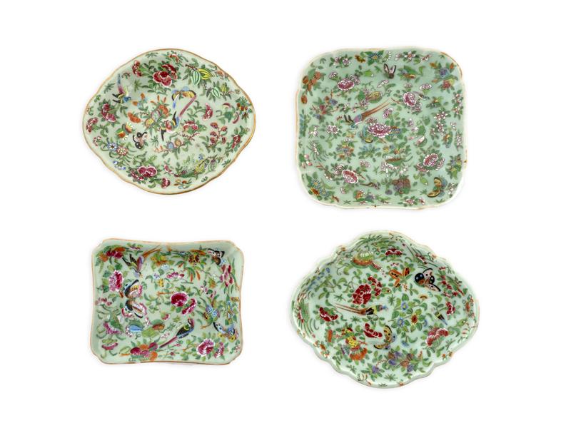 Four Chinese Export Famille Rose Celadon Porcelain Dishes