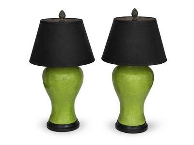 A Pair of Chinese Green-Glazed Porcelain Meiping Vases Mounted as Lamps