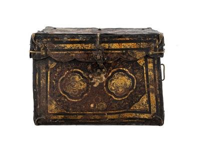 A Tibetan Brass Mounted Leather Box