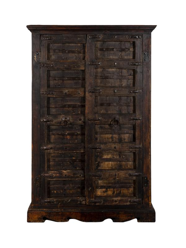A Continental Iron Mounted Oak Two Door Cabinet