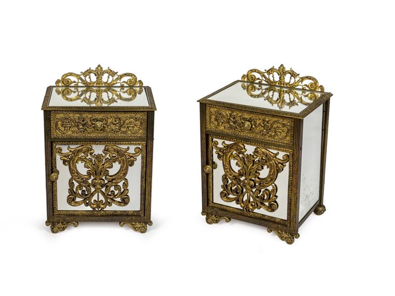 A Pair of Venetian Neoclassical Style Gilt-Metal Mounted Mirrored Side Tables