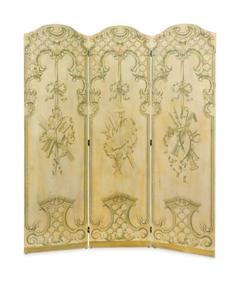 A Louis XV Style Painted Three-Panel Floor Screen