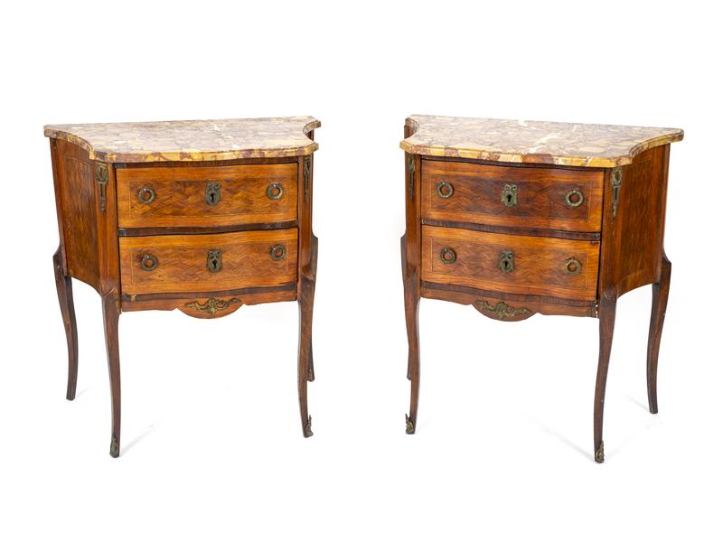 A Pair of Louis XV/XVI Transitional Style Parquetry Tables en Chiffoniere