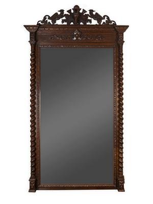 A Victorian Carved Oak Hall Mirror with Storage Seat