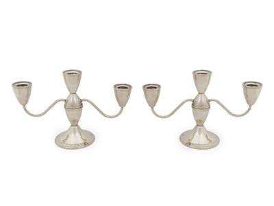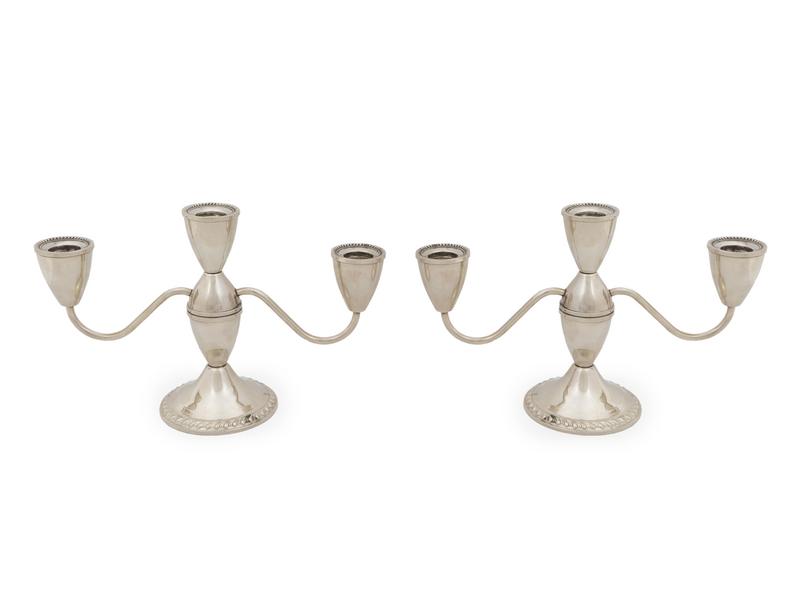 A Pair of American Weighted Silver Three-Light Candelabra
