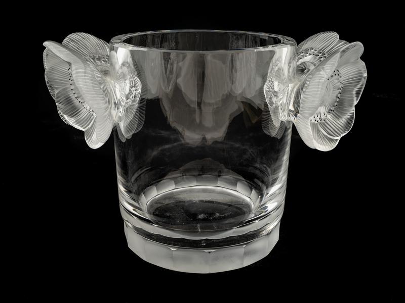 A Lalique Molded and Frosted Glass Poppy Champagne Ice Bucket