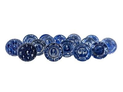 Fourteen English Blue and White Transfer-Printed Porcelain Historical Figure Plates