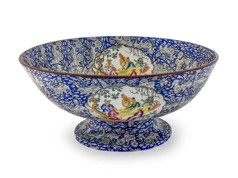 A Large English Transfer Decorated Chinoiserie Footed Bowl