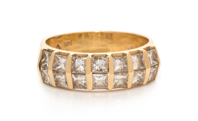 Containing 14 princess cut diamonds weighing approximately 1.40 carats total.