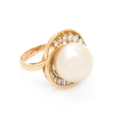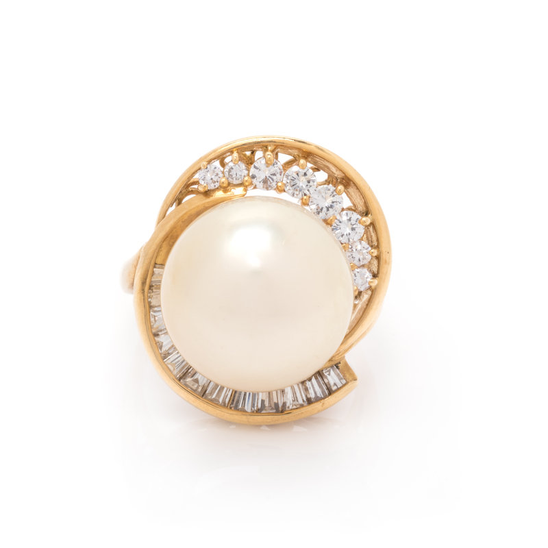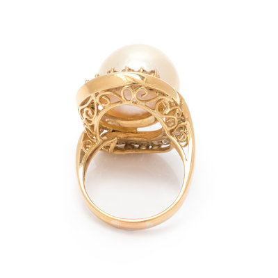 CULTURED SOUTH SEA PEARL AND DIAMOND RING