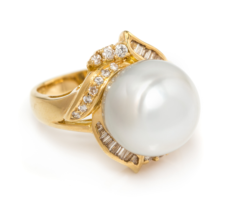 CULTURED SOUTH SEA PEARL AND DIAMOND RING
