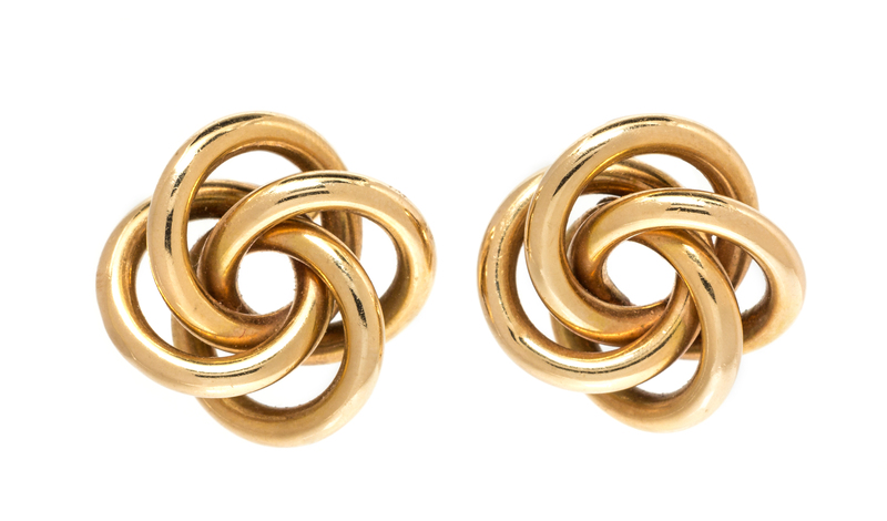 Consisting of four interlocking rings, with screw backs.