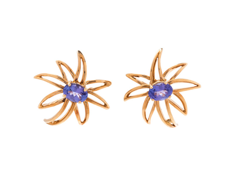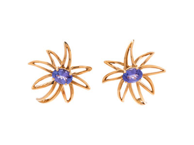 TIFFANY & CO., TANZANITE AND YELLOW GOLD 'FIREWORKS' EARCLIPS