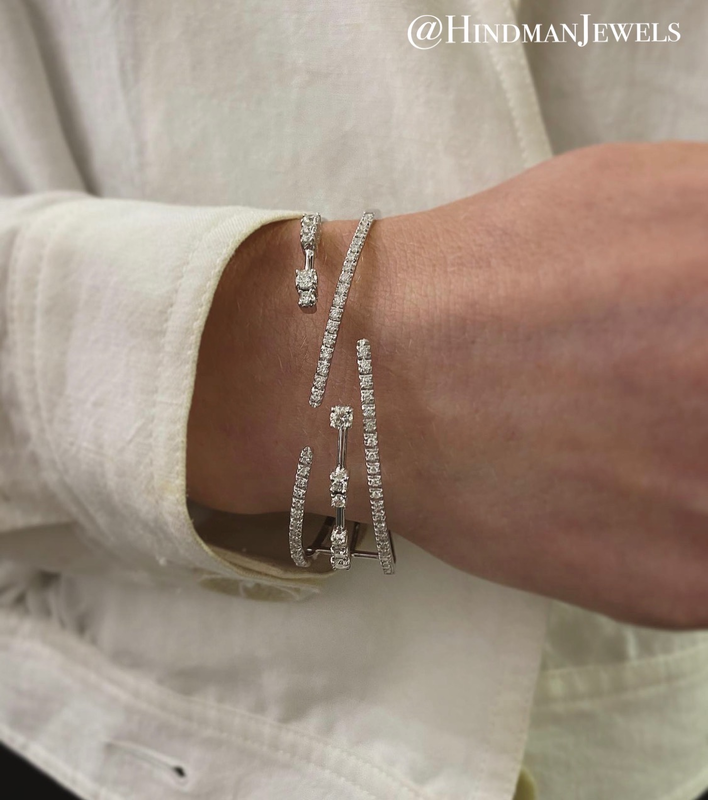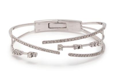 Containing 66 round brilliant cut diamonds weighing approximately 0.95 carat total, hinged at back. Mounted in white gold.