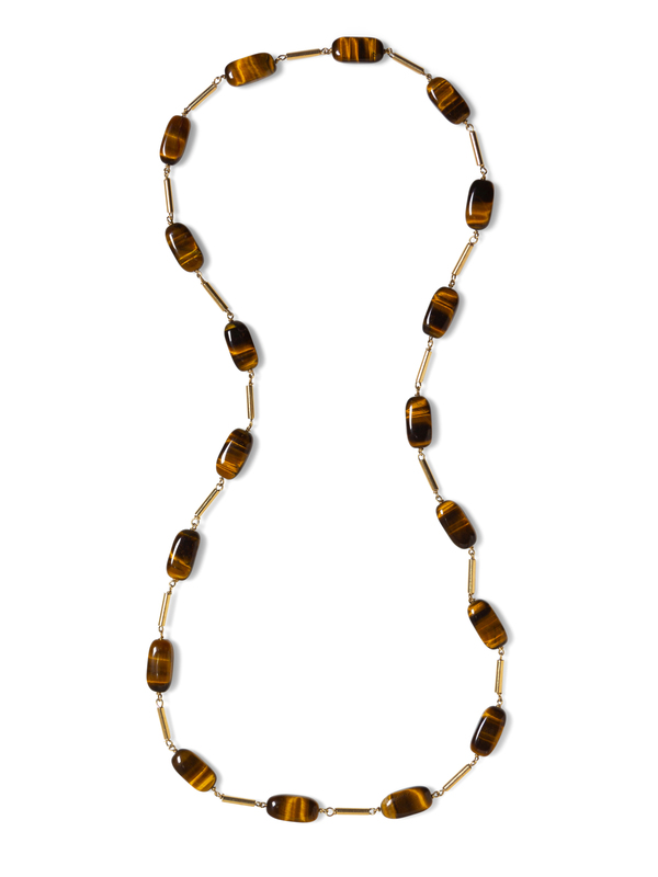 YELLOW GOLD AND TIGER'S EYE BEAD NECKLACE