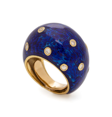 ENAMEL AND DIAMOND BOMBE RING