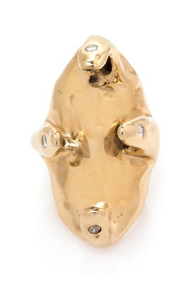 MODERNIST YELLOW GOLD AND DIAMOND RING