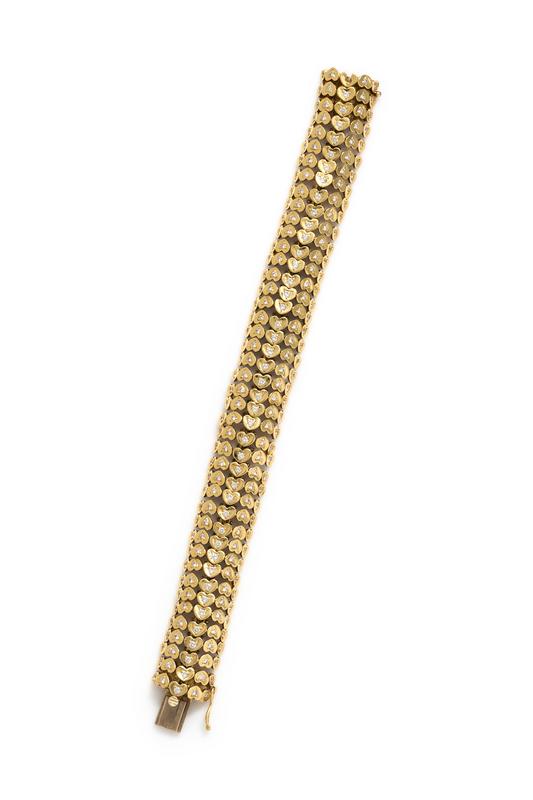 YELLOW GOLD AND DIAMOND HEART MOTIF BRACELET