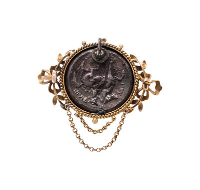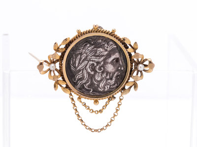 YELLOW GOLD AND GREEK COIN PENDANT/BROOCH