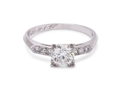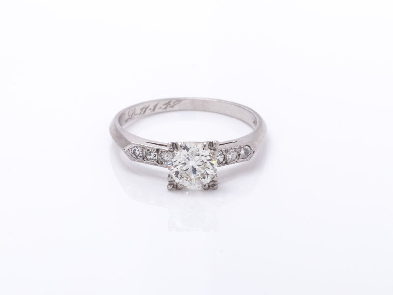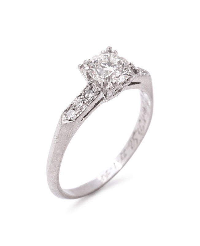 Containing one old European cut diamond weighing approximately 0.65 carat and six single cut diamonds. Mounted in platinum.