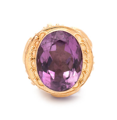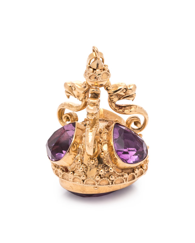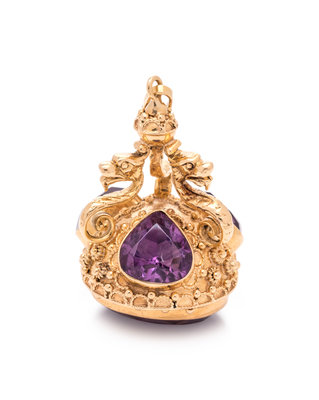 YELLOW GOLD AND AMETHYST FOB PENDANT