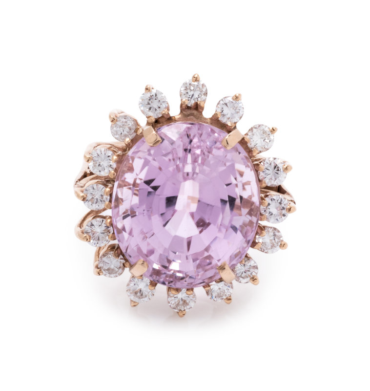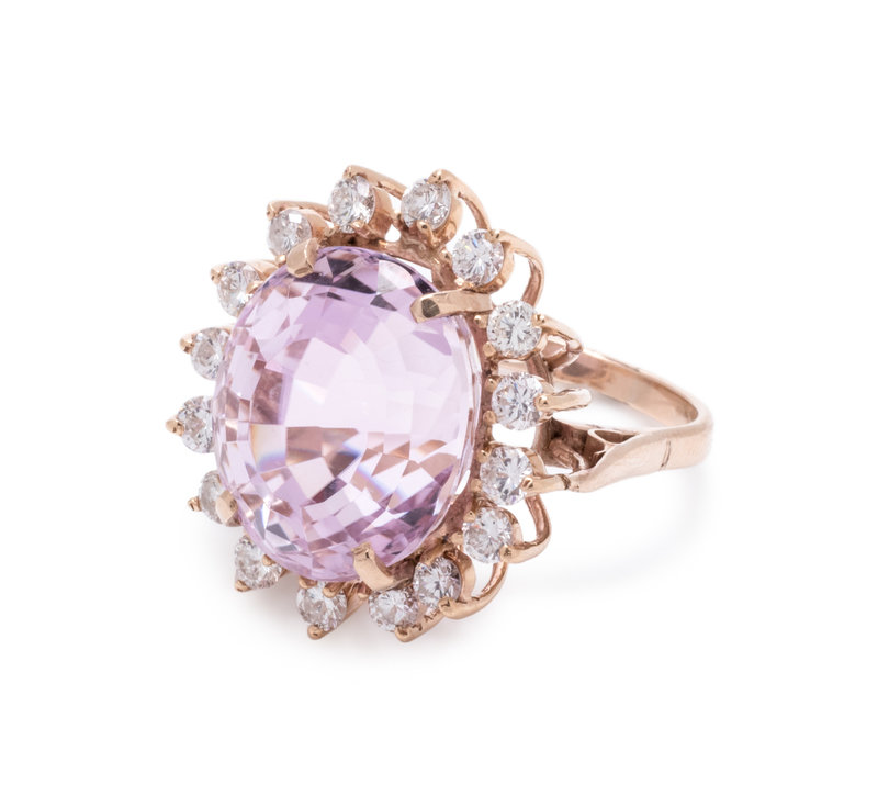 KUNZITE AND DIAMOND RING