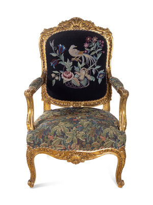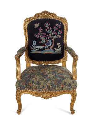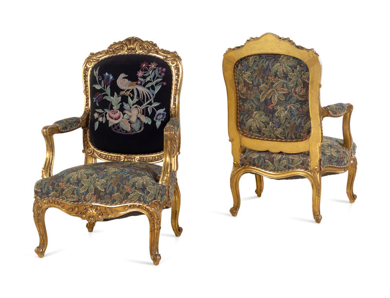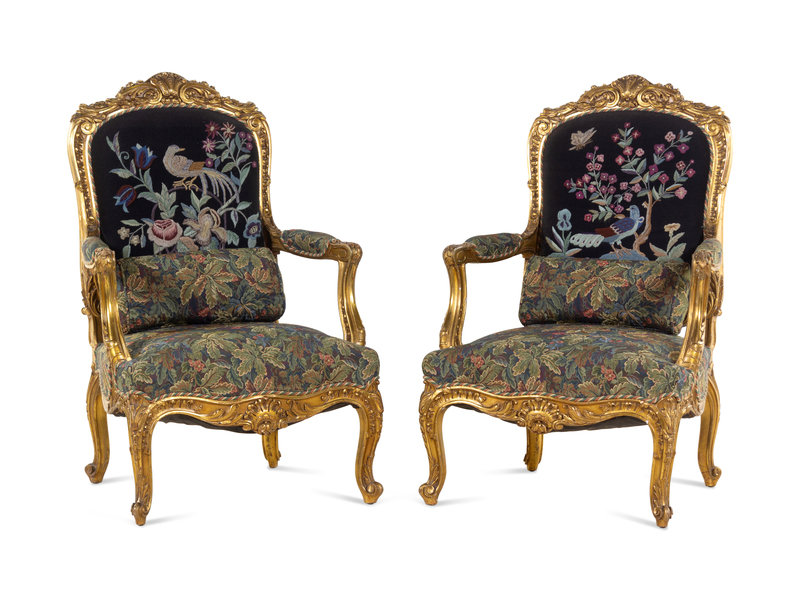 A Pair of Louis XV Style Carved Giltwood Fauteuils