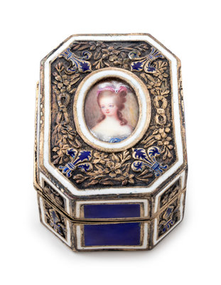 depicting Marie Antoinette, bearing two small boar guarantee marks and an indistinct lozenge mark.