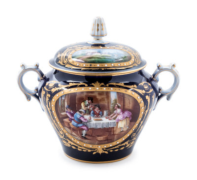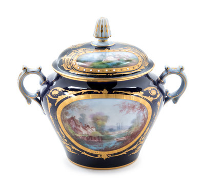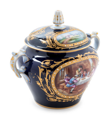 A Sèvres Style Painted, Parcel Gilt and "Jeweled" Porcelain Covered Jar