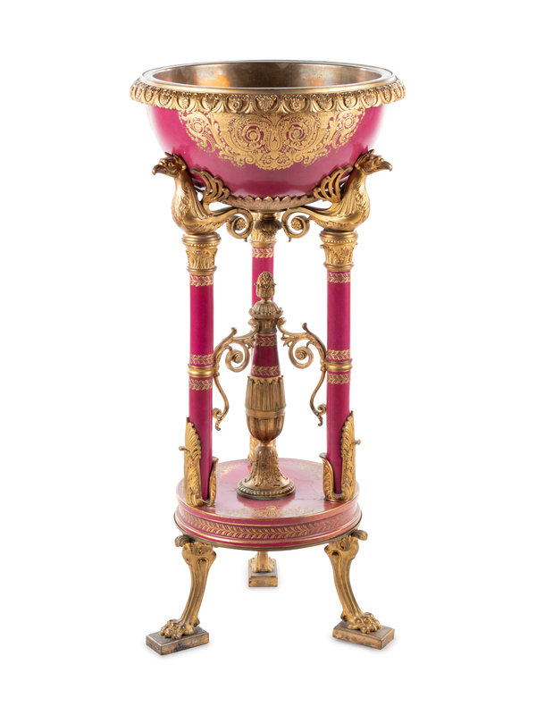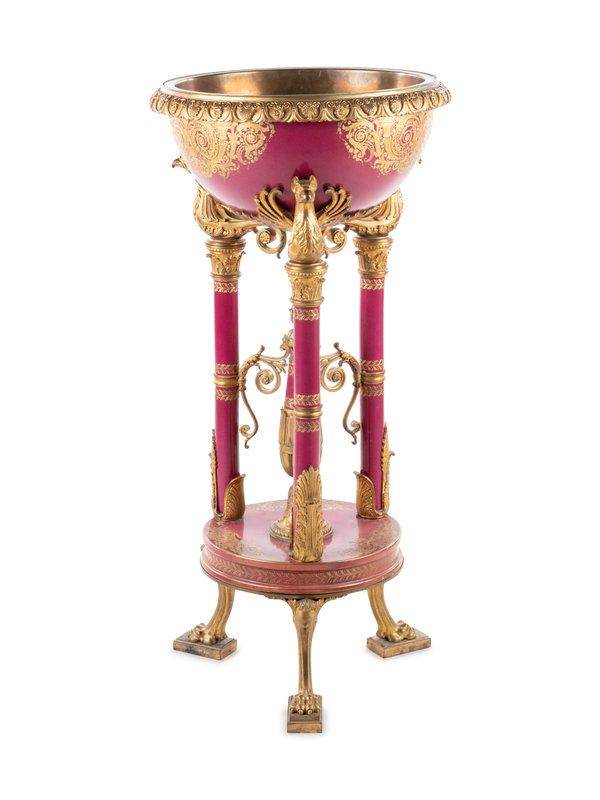 A Sèvres Style Gilt Bronze Mounted Porcelain Jardinière on Stand
