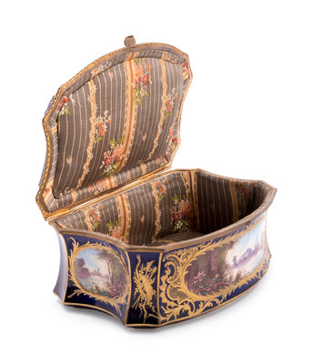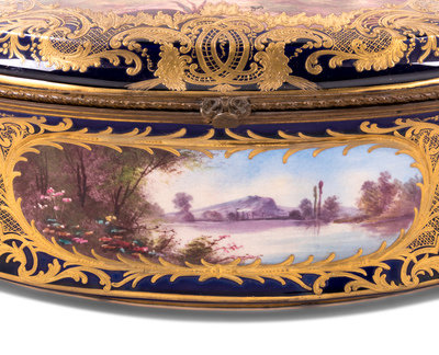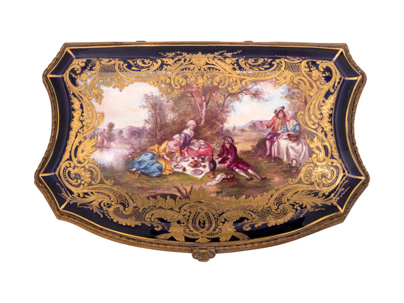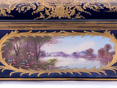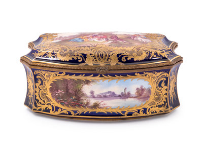 A Sèvres Style Painted and Parcel Gilt Porcelain Table Casket