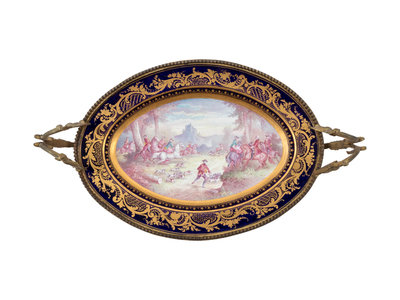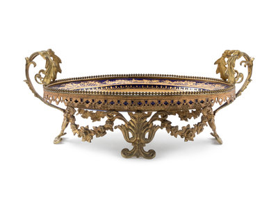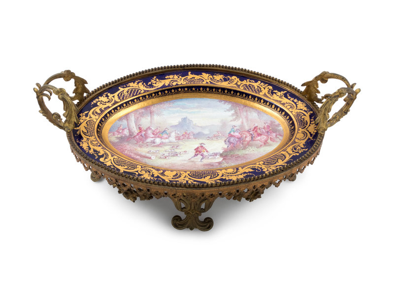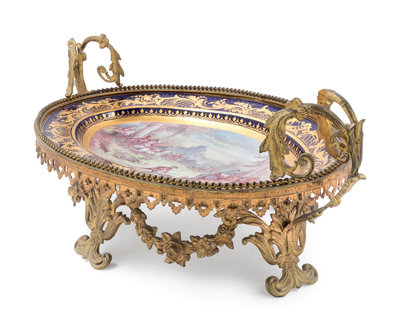 A Sèvres Style Gilt Metal Mounted Painted and Parcel Gilt Porcelain Center Bowl
