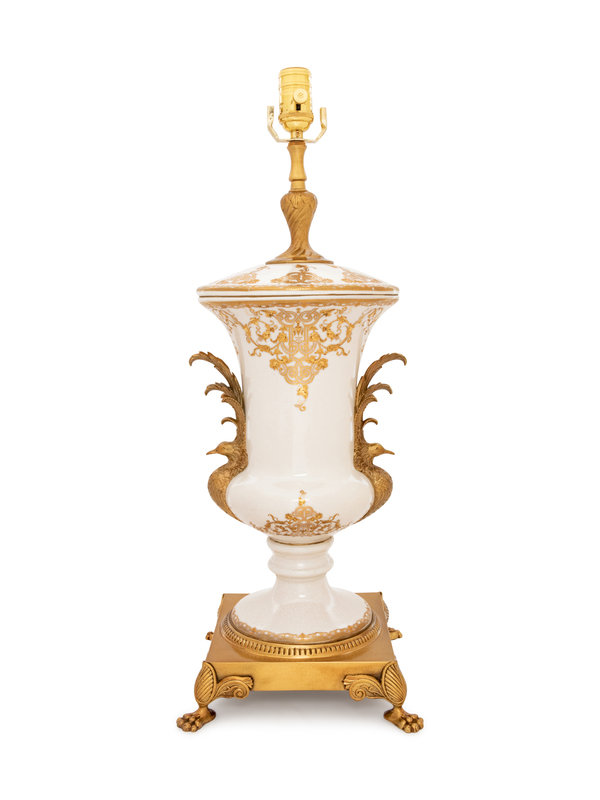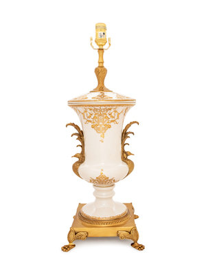 A Sèvres Style Gilt Metal Mounted Porcelain Urn Mounted as a Lamp