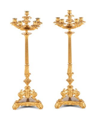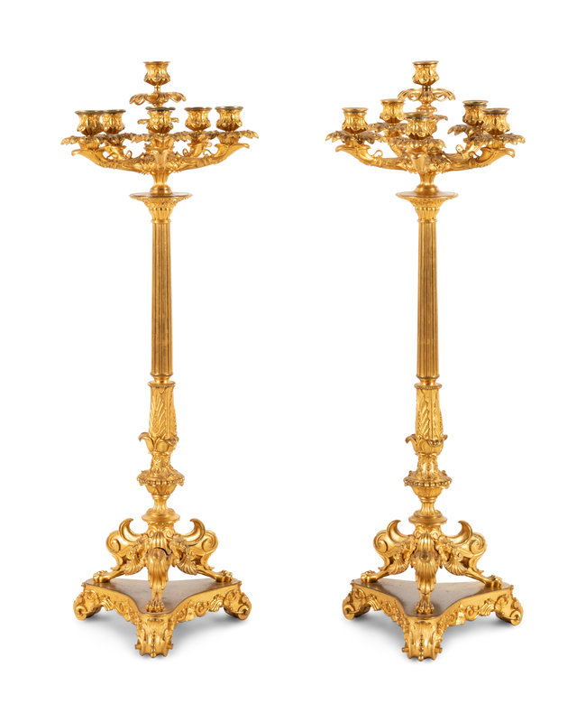 A Pair of Charles X Gilt Bronze Six-Light Candelabra