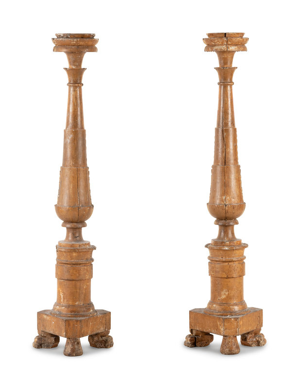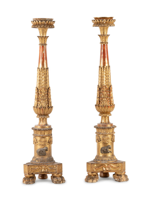 A Pair of Neoclassical Carved Giltwood Prickets