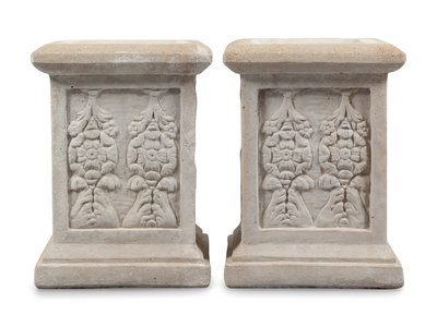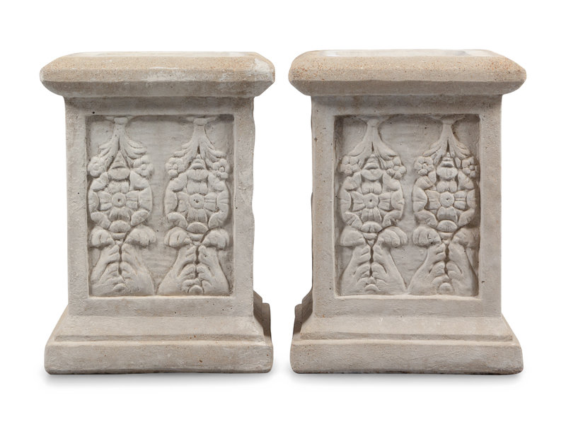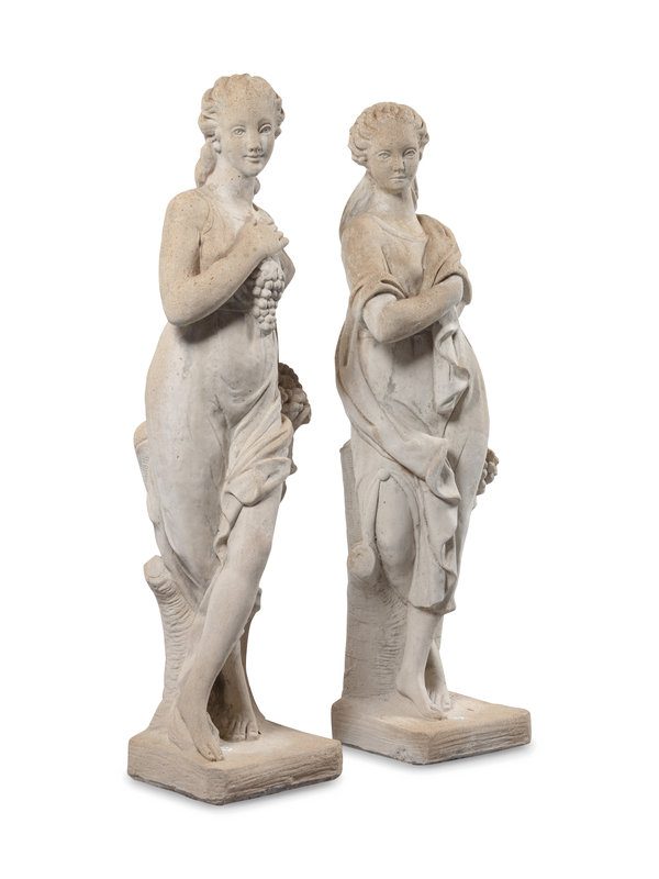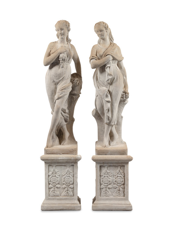 A Pair of Neoclassical Style Cast Stone Figures of Bacchic Maidens on Stands