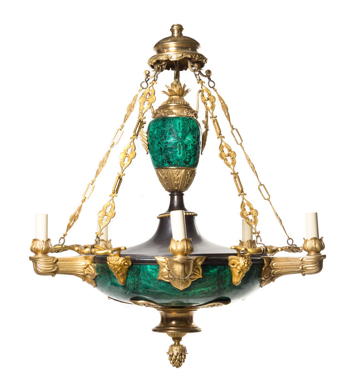 A French Neoclassical Gilt Bronze and Malachite Chandelier