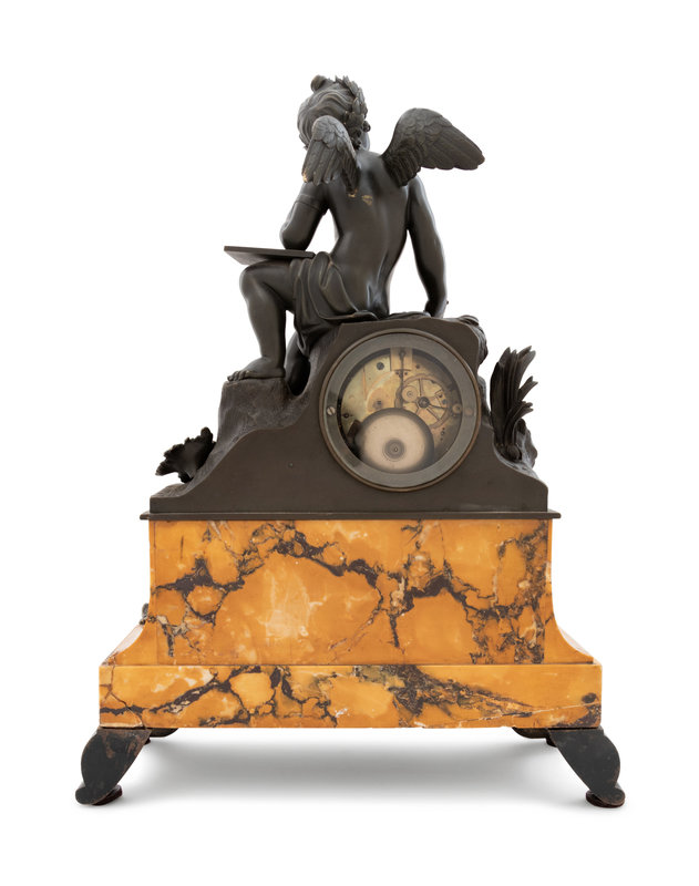 A French Bronze and Sienna Marble Figural Mantel Clock