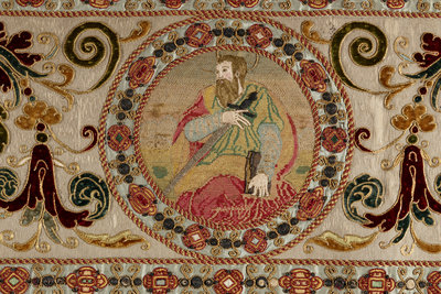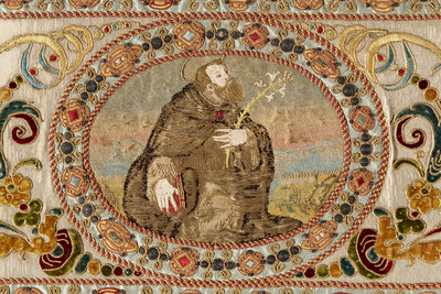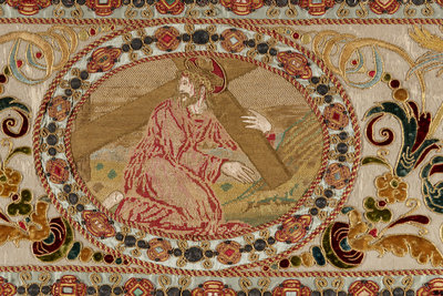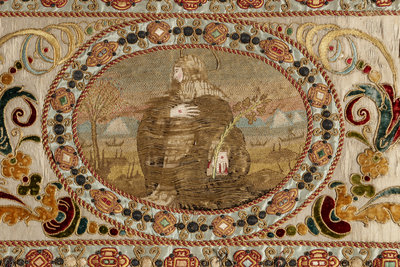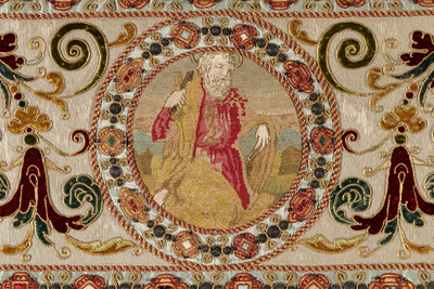 A Continental Petit-Point and Metallic Thread Embroidered Ecclesiastical Panel