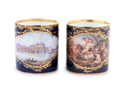 Two Meissen Painted and Parcel Gilt Porcelain Coffee Canns