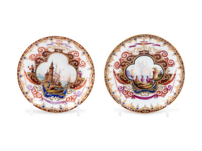 A Pair of Meissen Painted and Parcel Gilt Porcelain Dishes