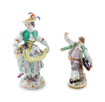 Two Meissen Painted and Parcel Gilt Porcelain Figures