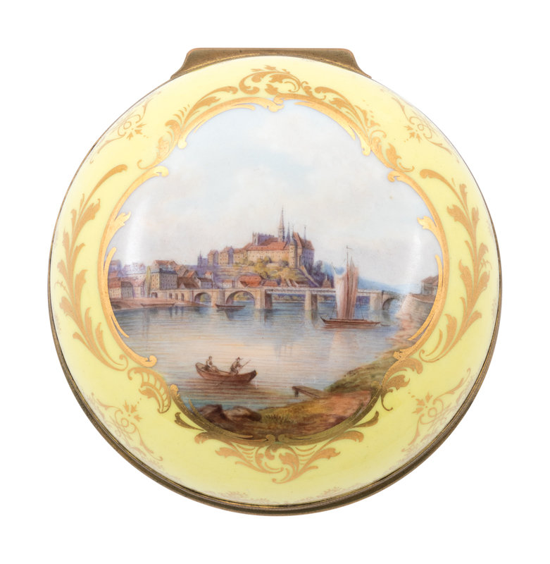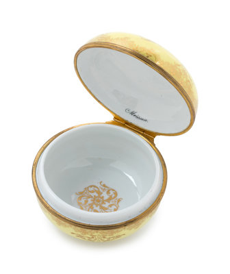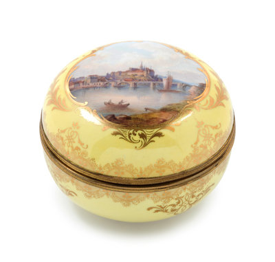 A Meissen Gilt Metal Mounted Painted and Parcel Gilt Yellow-Ground Porcelain Box